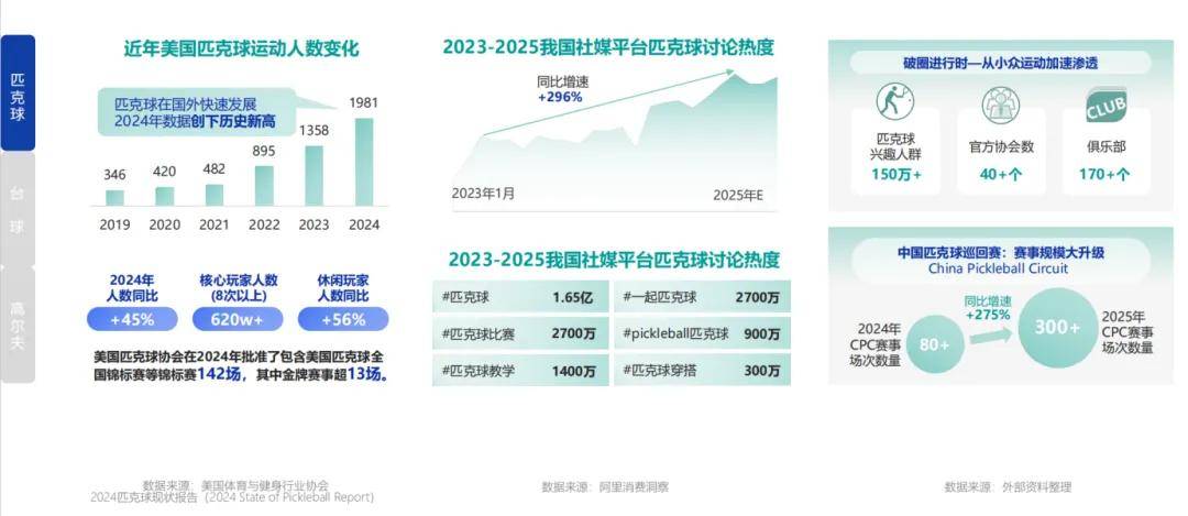趋势球类(匹克球、台球、高尔夫等)属于蓝海市场,增长潜力大,但仍需加强市场教育。