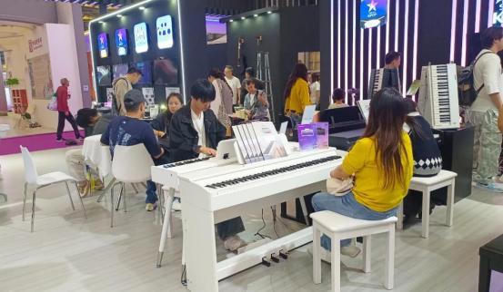 SAMICK展台以其“科技感+互动性”为核心设计理念,成功打造了一个兼具视觉冲击力与体验感的全景式智能空间。整体色调采用梦幻的粉紫渐变,并融合了动态光影效果和模块化展示设计,将“数字×智能”的主题贯穿于每一个细节之中。展台特别设置了三大互动体验区:智能演奏体验区让参与者感受即兴演奏的乐趣;数字创作工作站为音乐制作提供了无限的可能性;场景化应用展示区则让音乐融入各种生活场景。参观者不仅可以“看产品”,更能深度“玩音乐”,无论专业音乐人还是初学者,都能找到属于自己的互动场景。这种沉浸式的体验让每一位参观者都能感受到音乐与科技融合所带来的独特魅力,尽情享受这场视听的盛宴。